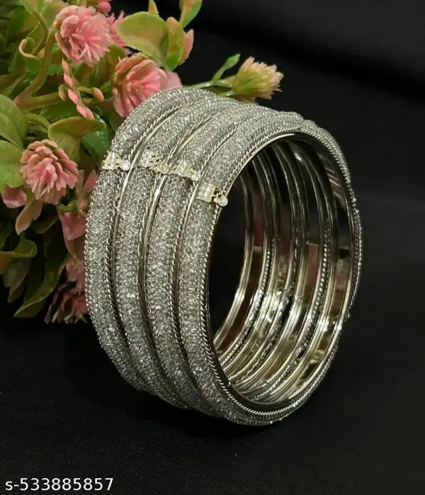 Silver Plated Ad Sen Diamonds 4Pcs Bangles Sets